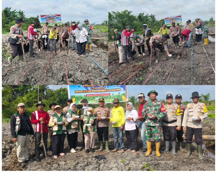 tiraipublik.Com _ Batang Tuaka – Dalam rangka mendukung program ketahanan dan swasembada pangan nasional, Kapolsek Batang Tuaka IPTU Andrianto, S.H., M.H memimpin langsung kegiatan Penanaman Jagung Serentak Kuartal I Tahun 2026 bersama unsur pemerintahan dan masyarakat di wilayah Kecamatan Batang Tuaka, Sabtu (07/03/2026).