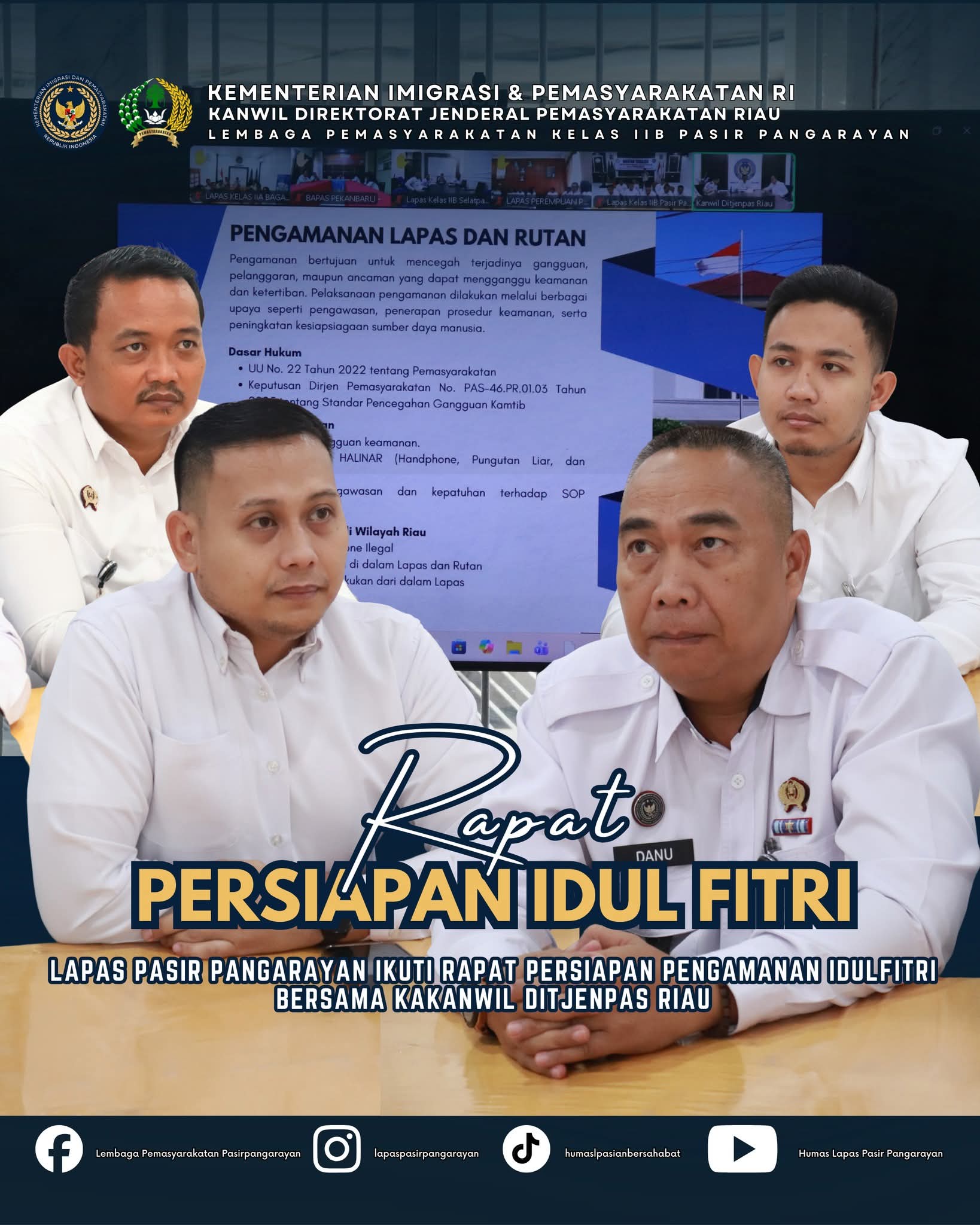 tiraipublik.Com  _ Pasir Pangarayan – Lembaga Pemasyarakatan (Lapas) Kelas IIB Pasir Pangarayan mengikuti rapat persiapan pengamanan menjelang Hari Raya Idulfitri 1447 Hijriah yang dipimpin langsung oleh Kepala Kantor Wilayah Direktorat Jenderal Pemasyarakatan (Ditjenpas) Riau, Maizar, pada Kamis (12/3/2026).