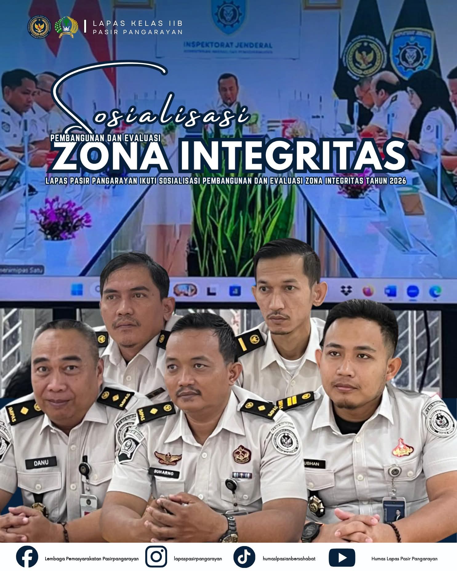Kegiatan yang dilaksanakan melalui Zoom Meeting ini diikuti oleh jajaran Unit Pelaksana Teknis (UPT) Pemasyarakatan dan Imigrasi di seluruh Indonesia. Sosialisasi ini bertujuan untuk memberikan pemahaman terkait mekanisme pembangunan serta evaluasi Zona Integritas di lingkungan Kementerian Imigrasi dan Pemasyarakatan.