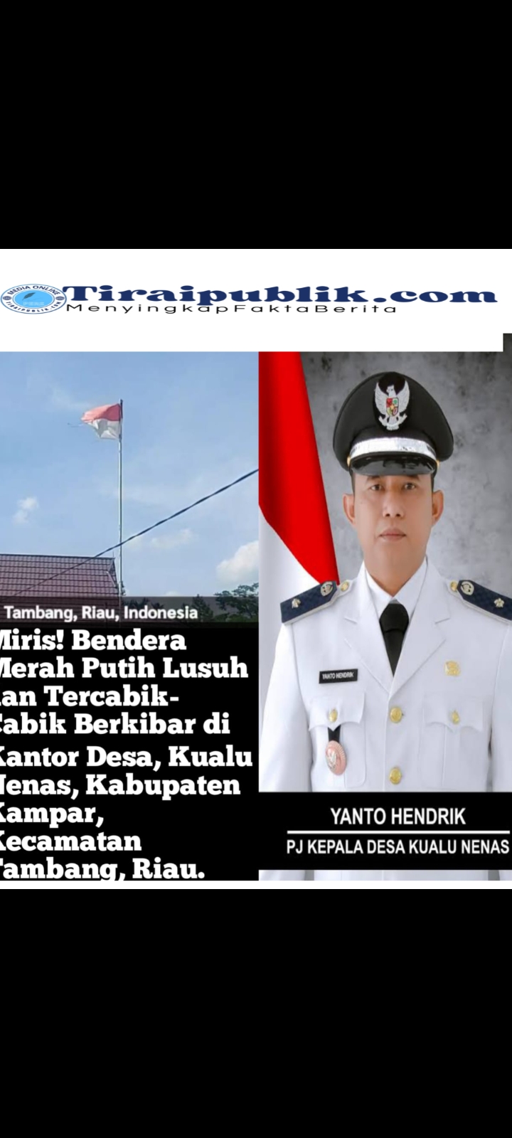 tiraipublik.Com _ Kampar,12 juni 2025, Knri  Di Temukan bendera merah putih yang berkibar di Depan Kantor Desa kualu nenas, kabupaten kampar kecamatan Tambang Riau, kusam dan tercabik-cabik atau biyasa di sebut koyak. ( 12-06-2025 )
