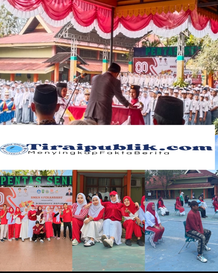 tiraipublik.Com _ Pekanbaru, 20/08/2025 — Sekolah Menengah Kejuruan Negeri 4 Pekanbaru mengadakan rangkaian kegiatan dalam rangka memperingati Hari Ulang Tahun Republik Indonesia ke-80. Minggu 17/08/2025 Acara diawali dengan upacara bendera yang khidmat, dipimpin langsung oleh Kepala Sekolah SMK negeri 4 Pekanbaru Djunaidi M.Pd yang memberikan pidato inspiratif.