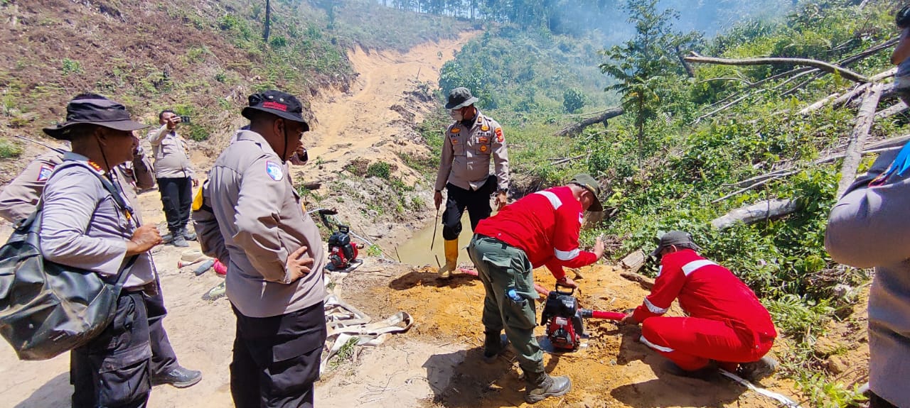 Personel Ditlantas Polda Riau Bersama Polres Rohul Berjibaku Padamkan Api dan Melakukan Peninjauan Titik Api di Wilayah Rokan IV Koto