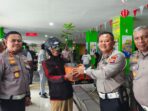 Selain helm, personel Polwan Ditlantas juga membagikan brosur imbauan tertib berlalu lintas serta tumbler sebagai bentuk kampanye hidup sehat dan hemat plastik.