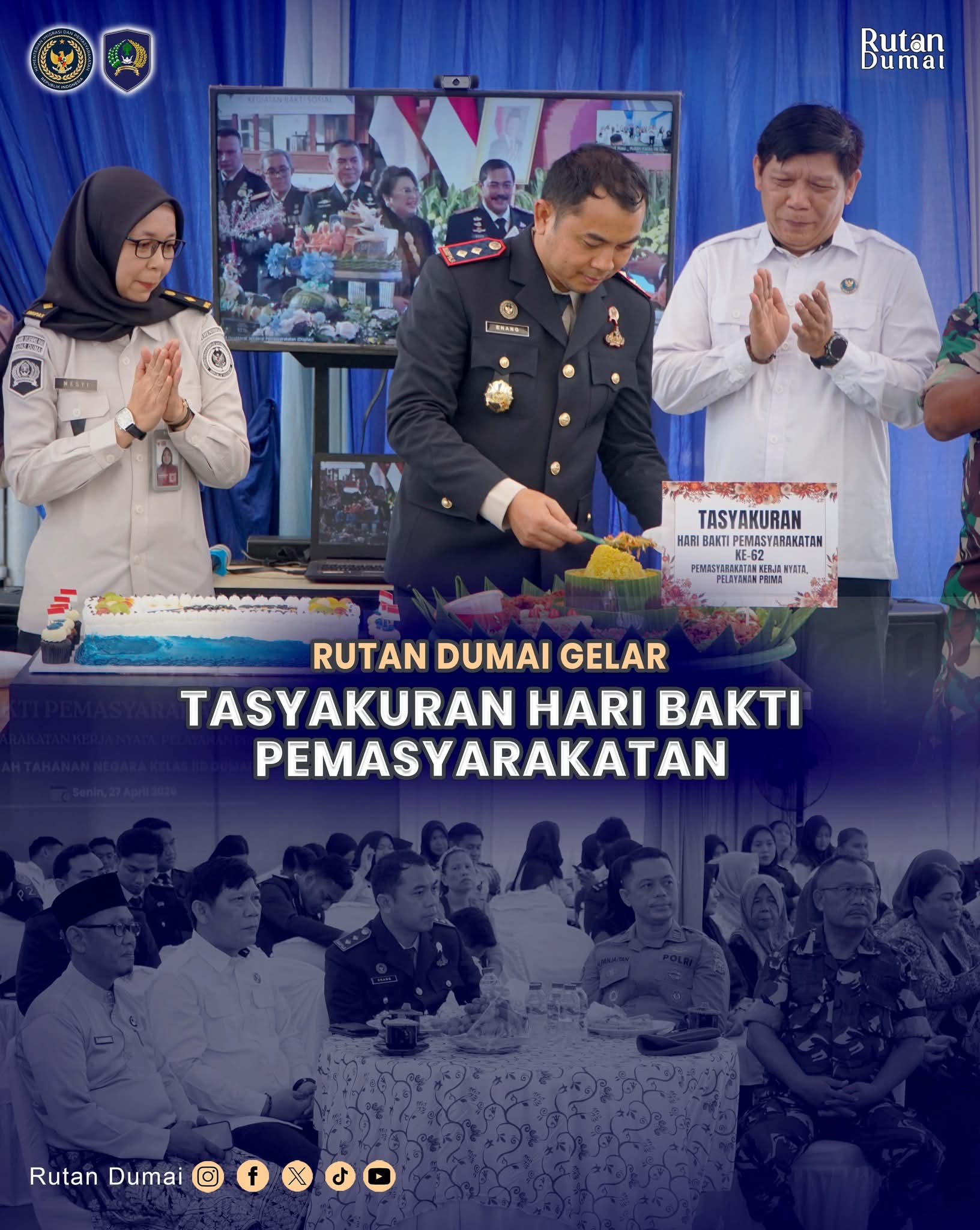 Dumai – Rumah Tahanan Negara (Rutan) Kelas IIB Dumai menggelar kegiatan tasyakuran dalam rangka memperingati Hari Bakti Pemasyarakatan (HBP) ke-62, Senin (27/4). Kegiatan berlangsung secara hybrid melalui Zoom Meeting dan diikuti oleh seluruh Unit Pelaksana Teknis (UPT) Pemasyarakatan di Indonesia.