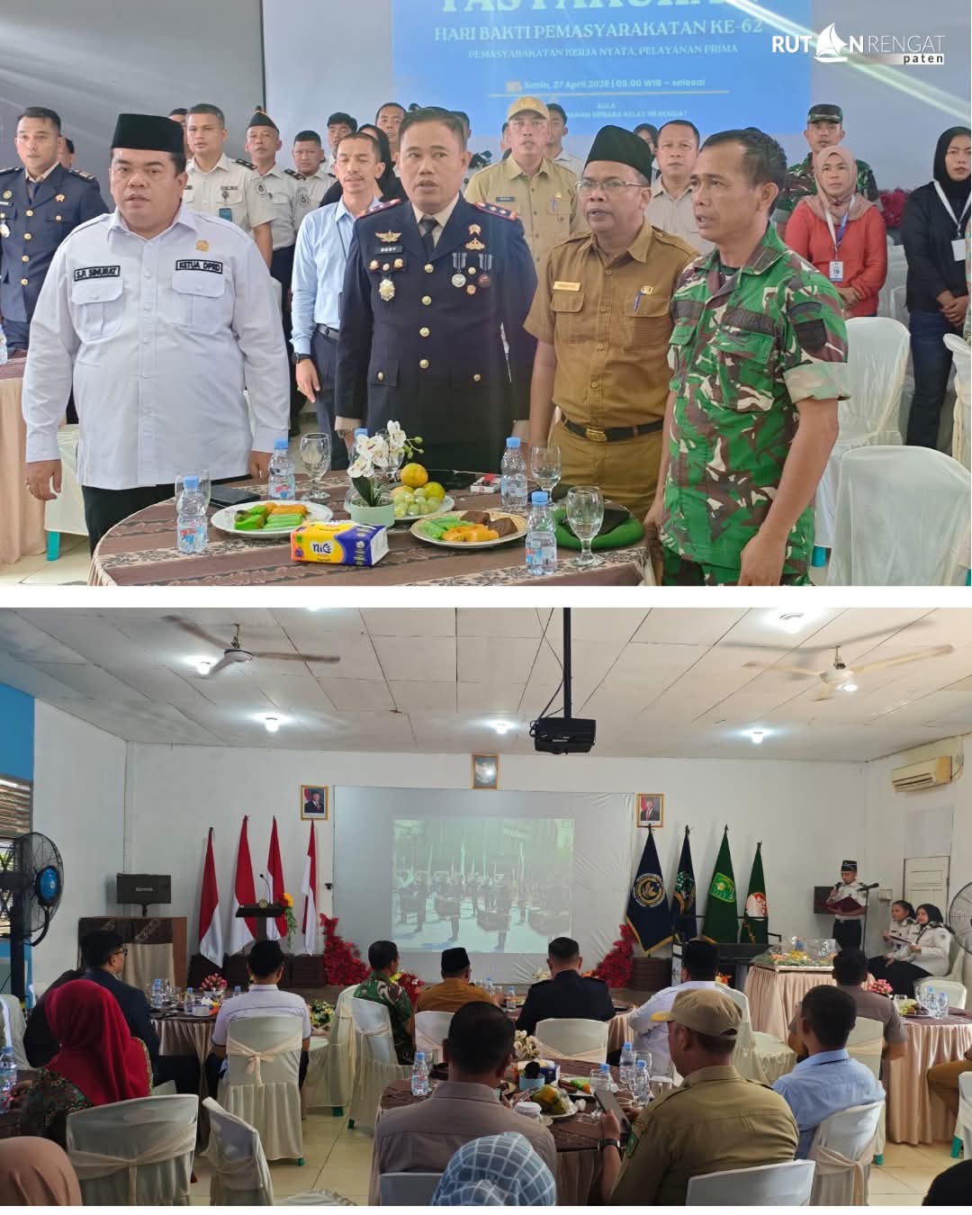 Rengat – Senin (27 April 2026) Rumah Tahanan Negara (Rutan) Kelas IIB Rengat turut serta dalam kegiatan Tasyakuran Hari Bhakti Pemasyarakatan (HBP) ke-62 yang diselenggarakan oleh Kementerian Imigrasi dan Pemasyarakatan. Kegiatan ini diikuti secara virtual oleh seluruh Unit Pelaksana Teknis (UPT) Pemasyarakatan di Indonesia dan dipusatkan di Aula Rutan Rengat.