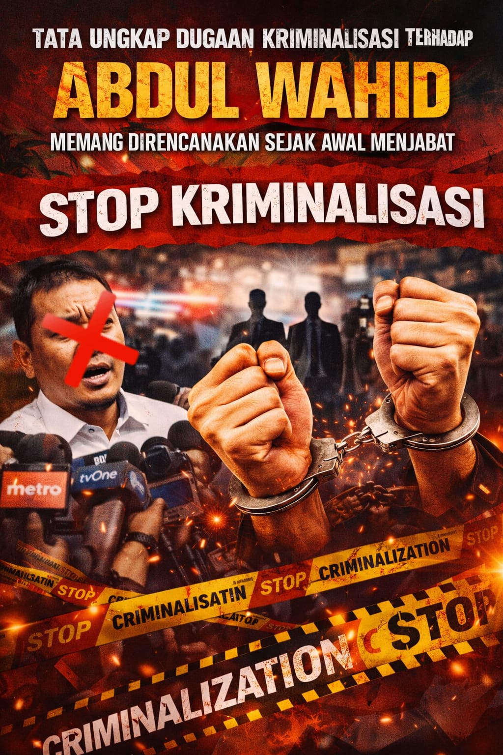 “Peristiwa drama kasus PUPR PKPP ini diduga kuat menjadi senjata jebakan batman oleh oknum pengendali terhadap gubernur Abdul Wahid, semoga beliau diberikan kebebasan, terhindar dari fitnah, keadilan pasti menemukan jalannya” tutup tata.