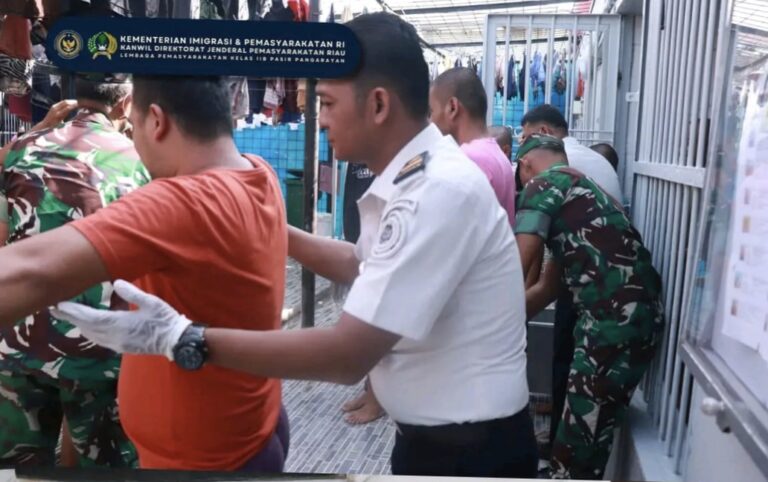 tiraipublik.Com _ Pasir Pengaraian – Dalam rangka meningkatkan kewaspadaan dan menjaga stabilitas keamanan selama bulan suci Ramadan 1447 H, Lembaga Pemasyarakatan Kelas IIB Pasir Pangarian menggelar razia gabungan bersama TNI, pada Selasa, (3/5/2026). Kegiatan razia rutin ini menggandeng personel dari Koramil 02 Rambah sebagai bentuk sinergitas antar aparat dalam menciptakan situasi yang aman dan kondusif di lingkungan pemasyarakatan. Razia dipimpin langsung oleh Kepala Seksi Administrasi Keamanan dan Ketertiban (Adm Kamtib), Moch. Subhan Zakaria, didampingi Kepala Kesatuan Pengamanan Lapas (Ka.KPLP) Veazanol Kosuma. Petugas gabungan menyisir sejumlah kamar hunian warga binaan untuk memastikan tidak adanya barang-barang terlarang yang berpotensi mengganggu keamanan dan ketertiban. Selain penggeledahan kamar hunian, dalam kegiatan tersebut juga dilaksanakan tes urine secara acak kepada 20 orang warga binaan. Langkah ini dilakukan sebagai upaya deteksi dini terhadap potensi penyalahgunaan narkotika di dalam lapas. Kepala Lapas Pasir Pangarain, Efendi P Purba, melalui Kasi Adm Kamtib Moch. Subhan Zakaria menjelaskan bahwa kegiatan ini merupakan langkah preventif yang secara konsisten dilaksanakan, terlebih pada momen bulan Ramadan yang membutuhkan suasana aman dan kondusif. “Razia dan tes urine ini merupakan bagian dari upaya deteksi dini serta komitmen kami dalam mencegah peredaran dan penyalahgunaan narkoba di dalam lapas. Apalagi di bulan suci Ramadan, kami ingin memastikan seluruh warga binaan dapat menjalankan ibadah dengan aman, tertib, dan khusyuk,” ujar Moch. Subhan Zakaria. Ia menambahkan, hasil keseluruhan dari tes urine ini seluruh warga binaan yang di tes urine dinyatakan negatif. “Kolaborasi dengan TNI melalui Koramil 02 Rambah ini adalah bentuk soliditas antar aparat dalam mendukung terciptanya situasi yang aman dan kondusif. Kami akan terus meningkatkan kewaspadaan dan konsistensi dalam pelaksanaan razia rutin maupun tes urine,” tegasnya. Pihaknya pun menegaskan komitmennya untuk terus menjaga keamanan, memberantas narkoba, serta mendukung program pembinaan yang berjalan optimal selama Ramadan 1447 H. Kegiatan ini sejalan dengan 15 Program Aksi Kementerian Imigrasi dan Pemasyarakatan, arahan Direktur Jenderal Pemasyarakatan, serta bimbingan Kepala Kantor Wilayah Direktorat Jenderal Pemasyarakatan Riau dalam upaya memberantas peredaran narkoba dan berbagai modus penipuan di lembaga pemasyarakatan dan rumah tahanan.